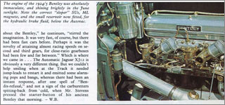 It was most enjoyable to be out in a real motor-car again and to be able to say I had been driving a Bentley at Brooklands! This brief backwards glimpse provided a firm reminder of the unassailable position occupied by the 3-litre Bentley some fifty years ago. Our 1942 account was published just after John Duffs victory at Le Mans, and apart from a later Editor of MOTOR SPORT deciding that in 1926 there was no comparable sporting car, another well-known motoring writer, whose mother bought a new 3-litre, has pointed out that people are apt to forget, now that the 3-litre is a vintage car, what a stupendous reputation it had in its heyday.    Continued...