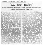 In immediate succession to last week's 30-98 Vauxhall, I am able to present the promised 3-litre Bentley — counterpart, contemporary, rival, call it what you will; These two descriptions have been on my mind for some time, and next, having been able to give them their share of attention, I will endeavour to cater in turn for those whose/idea of a sports car does not run to machines that have four whopping great cylinders, and are anything up to seventeen or eighteen years old into the bargain. Though what a tribute to their design and construction that latter remark is — and they're British, too! Continued...