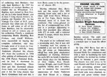 According to legend the Goodman Bentley was conceived about 200 metres from the summit of Danseys Pass-a remote and little used short cut to Central Otago from the north — on Saturday, June 4th, 1960. The South Canterbury Branch's Queen's Birthday Tour was en route to an overnight stop at Alexandra and the Goodman lads, Brian, then aged 20 and Barry, aged 17 struggled up the long winding pass in their Model T Tudor, they each having to put a foot hard down on the low gear pedal. Suddenly with the blare of a horn and a shower of shingle Don Oddie bellowed past in his 4 1/2 litre Bentley, and as he disappeared over the summit Barry was heard to mutter "One day I will own a car like that!" Continued...