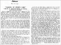 The car was built in 1929 and first raced in the Double-Twelve of that year, Dudley Benjafield and myself driving. After three hours, when well in the lead, we had the misfortune to break the dynamo coupling. It was impossible to repair the coupling at the pits, so the dynamo was removed and put in the back of the car and we went on, soon regaining the lead. The stewards, however, after due deliberation decided we were contravening the rules of running without the dynamo working and in position and compelled us to retire. Continued...