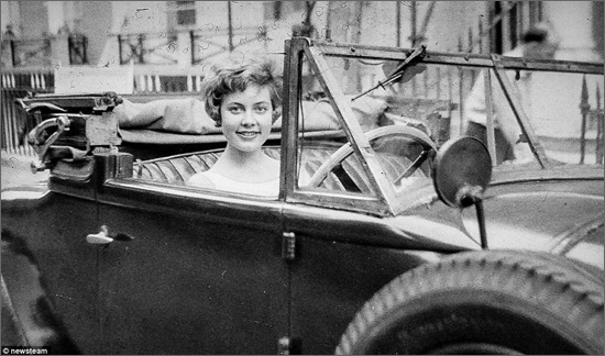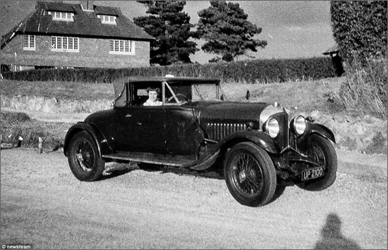 ![]() An unidentified woman is pictured in the vintage Bentley car in this undated black and white photograph |