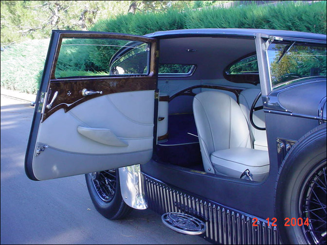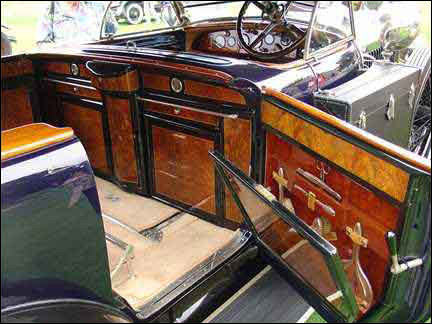 The Bluetrain's story is among the more remarkable automobile tales around. Seven years in the making, the Blutrain was constructed in a 13th century country mill in southern England by devout craftsmen. A master wood-worker and violin maker by trade, found and used a stately Ash tree, hewn from a manse in Devon (and carefully seasoned), for the structural wood in the body. Next, he selected the finest burls with which to enliven the interior. All marvelous elm wood from a single cured tree: grain matched, and inlayed with mother-of-pearl and fine silver. What an instrument indeed!!