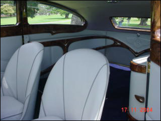 The Interior is truly meant for gentlemanly style and is fitted with two matching liquor cabinets. Each features antique crystal decanters. Everything imagined for your touring comfort.