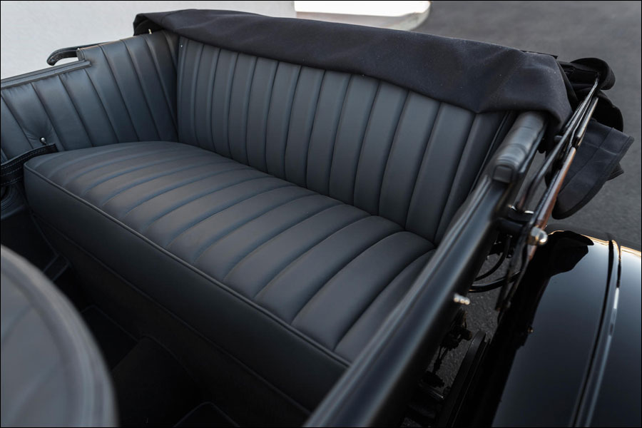 Right: John Milchik's '22 3-1. short chassis Vanden-Plas tourer, chassis #103, engine #109. One of the first Bentleys, this car is the speed model, having 21" tires, front wheel brakes, and engine speed modifications. It has shallow doors; one for the front seat on the left side and one for the rear seat on the right side.
