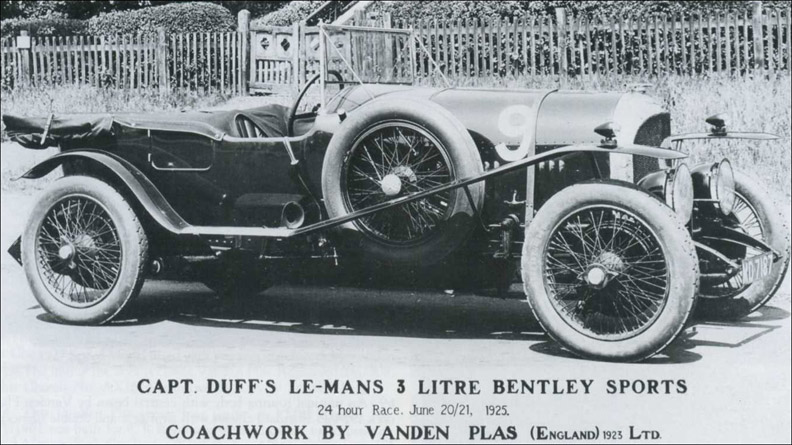 | More Info: | Team car driven by Duff at Montlhery in 1925. Michael Hay, in his book Bentley: The Vintage Years, 1997, states: "Vanden Plas body no. 1148. Duff's 1925 Le Mans car and 24 hour Montlhery record car. Then sold to Ronald Leon with Macquet Galviet saloon. 25 gallon Le Mans tank." |