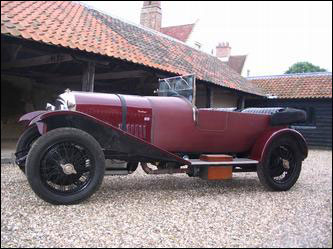 Vanden Plas 4 seat body Light Tourer (one of thirty nine to be made), Chassis 1235,(weight 1 ton 9 cwt) Engine 1242, Back axle ratio 13/55. Possibly delivered 25 Nov. 1925