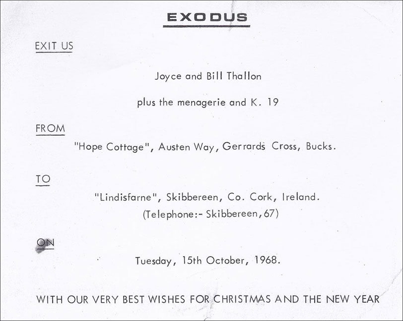 "This card (above) I got from Bill & Joyce Thallon when they left England for Ireland in 1968. This might interest the present owner as part of the history of the car."