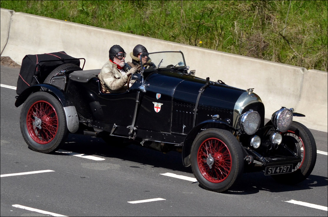 "K19, a 1923 3 litre, owned by friends (Bill and Joyce Thallon) of my mother's who lived just up the road from us in Gerrards Cross, Buckinghamshire, was the start of my interest in vintage Bentleys. Bill and Joyce had a couple of German Shepherd dogs that would ride in the back of K19 -- kitted out with their own goggles I might add! One of the dogs that my mother treated (she was a veterinary surgeon), was coming around from an anaesthetic just as K19 passed the surgery. Clearly that unique throaty exhaust note aroused the semi-comatose animal which tried to get to its feet!