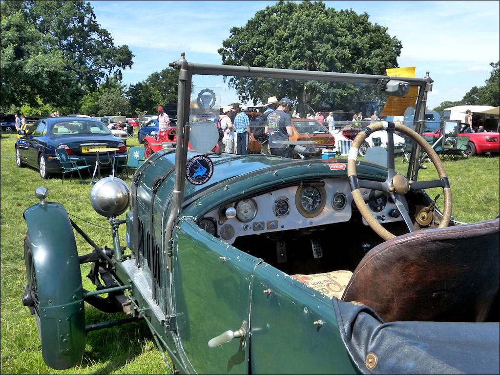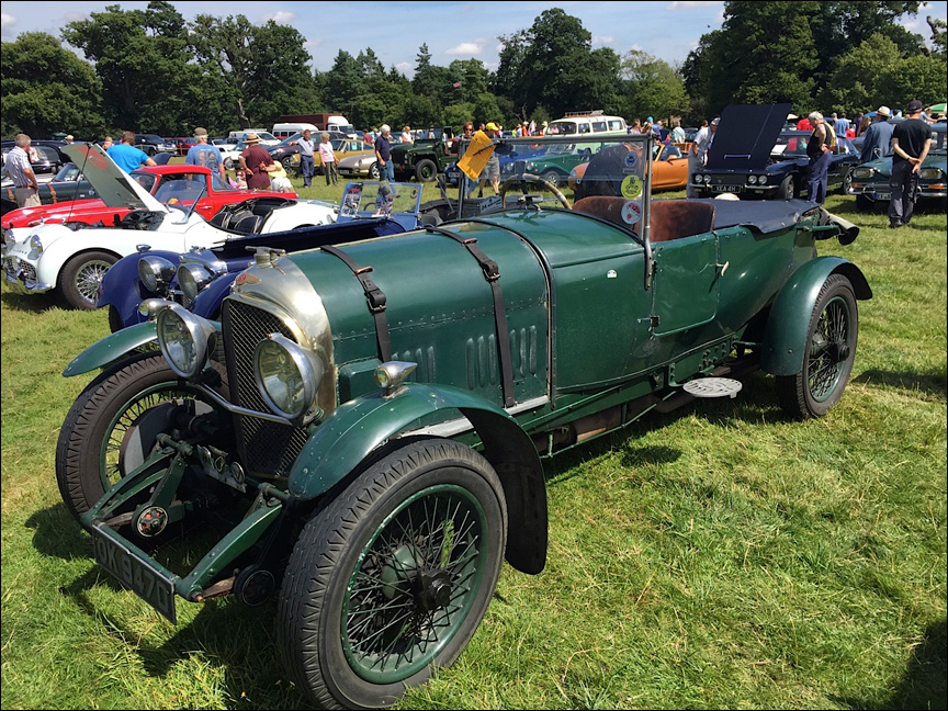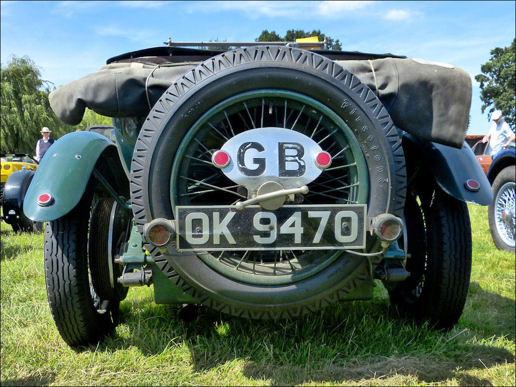 This car started life in 1923 as a T.T.Replica 3-litre chassis with Smith carburetter, A-type close-ratio gearbox, and the short 9ft. 9£in. wheelbase common also to its successor, the famous 'Red Label' Speed Model. The enamel of the radiator badge on T.T.Replicas was, however, blue. Front-wheel brakes of Perrot type, working in 16in. drums, were standard on Bentleys from mid-1923, and these are fitted to the car. A previous owner has fitted it with a 4½ litre engine and D-type gearbox. Other mechanical modifications include a lightened flywheel, twin S.U carburetters of modern type, and twin electric fuel pumps in place of an Autovac. Bodywork is the classic Vanden Plas open four-seater of panelled type with cutaway driver's side and externally-located handbrake lever; it has a hood, a non-original single-panel windscreen, and non-original headlamps with a lower-than-standard mounting. Also non-original are the angular mudguards at front and rear.