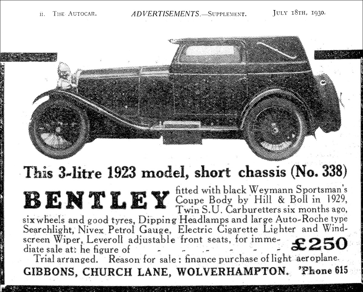 "I came across an advert for this car in The Autocar for 18th July 1930, showing it wearing a coupe body by the coachbuilders Hill & Boll of Yeovil, said to have been fitted in 1929. The styling of their bodies was often rather unusual, as this one."