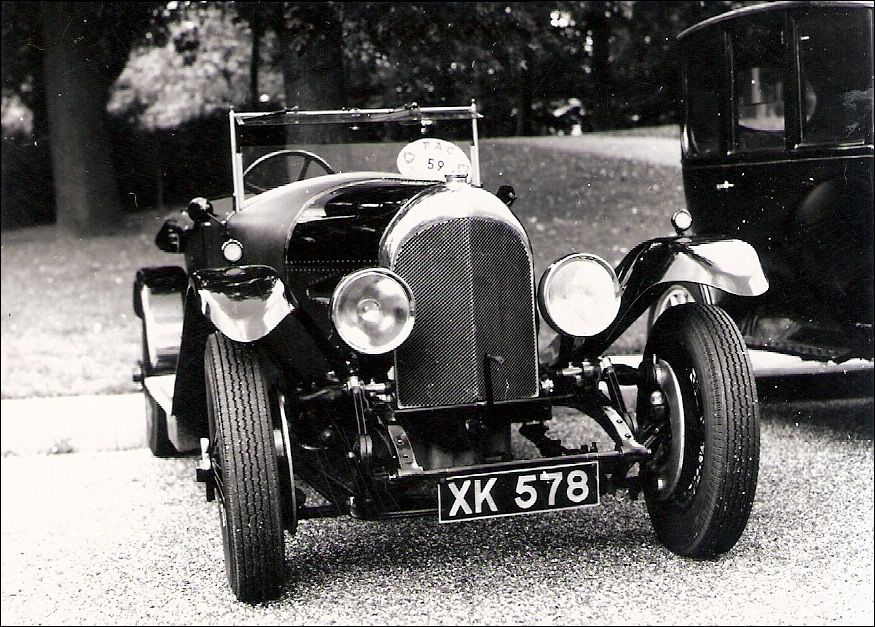 Car has been owned by Mr. Wilkins for 15 years. The original owner had the engine changed from 3 to 4 1/2-Litres and front wheel brakes and large section tires fitted. It has a body by R. Harrison and is one of the few Blue Label Short Chassis Bentleys.