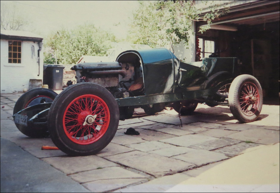 "This photograph was taken around 1982 when I started doing some restoration on my father's (Tom Morton's) car. It is taken in front of the garage at my father's house. The car is still in that garage."