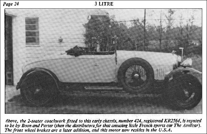 "In 1988 or 1989, I (Matt Sysak) started investigating the possibility of purchasing a vintage Bentley... The second car I looked at was a standard 3 liter chassis no. 424, engine no. 432. This 1923 was a December delivery and was one of the earliest cars equipped with 4-wheel brakes which Bentley Motors commenced installing on their new production cars in September 1923. It was owned by Connie Lampert at the time and when my wife Carol and I visited with them to inspect the car, I took a series of photos during the inspection."