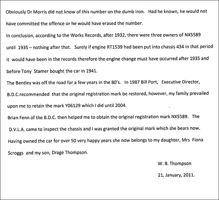 | More Info: | Michael Hay, in his book Bentley: The Vintage Years, 1997, states: "(1) 3 Litre Vanden Plas 4 seater reg YO 6129 eng RT1539 ex ch. RT1547. (2) Ch. 434/PL 3481, Vanden Plas 4 seater with 4� Litre radiator, 4� Litre engine, axle from ch. PL3481." |