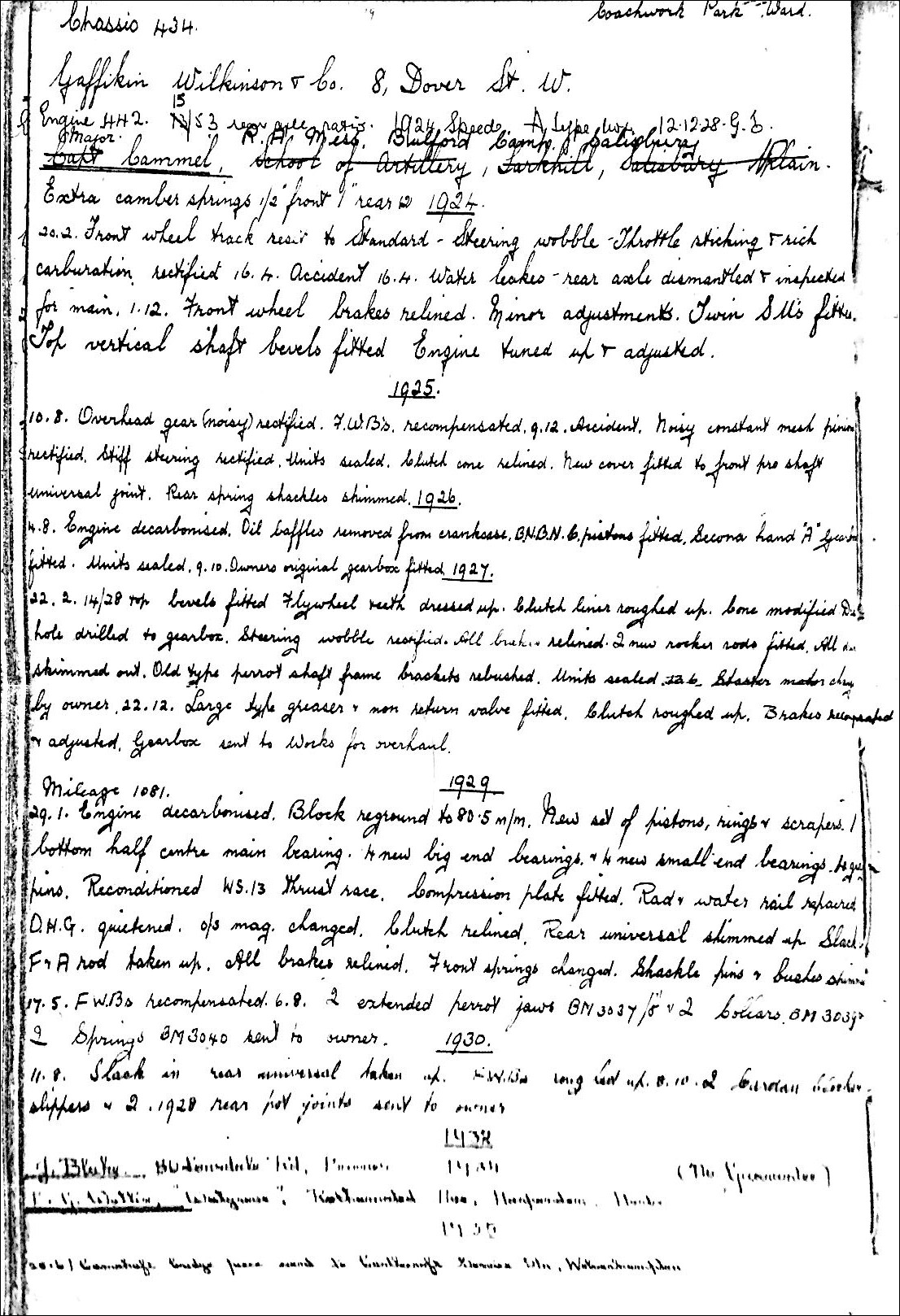 Major Cammel had originally had a saloon body built for the car, but he replaced it, I think in 1929, with an open Vanden Plas aluminium body.
