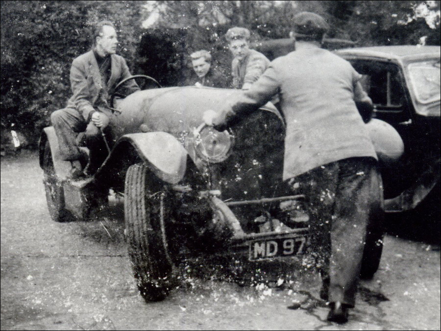 "There was quite a motoring interest at the Manor House besides Mr. Peregrine and his Bentleys. Tony Hartridge, an architect who had one of the offices, ran a smart Lancia Aprillia and had a number of friends in the V.S.C.C. During May he asked me if I would use PN to help with a project. A friend of his, Gerry Crozier, had heard that one of the oldest Bentley cars, chassis No. 5 and engine No.1, was lying abandoned in a ramshackle lock up garage in Kent that was about to be demolished by some developers. He had located the owner and was told if we wanted to save the car we could take it.