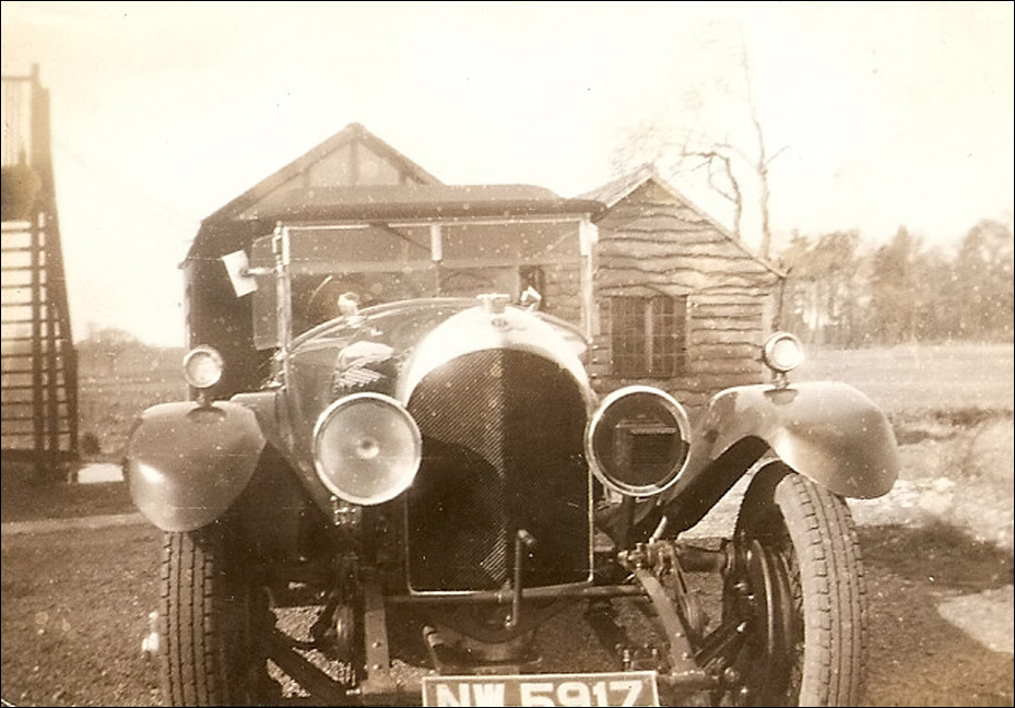 I have attached a few photos (above) — the sepia pictures are of the car outside our home in Reigate Surrey UK taken probably during the war and the colour pictures are of the restored car when it was in Bristol UK before being sold to Vancouver. The Bristol owner was terribly sorry not to have been able to bring the car for my father to see.!