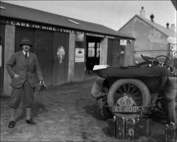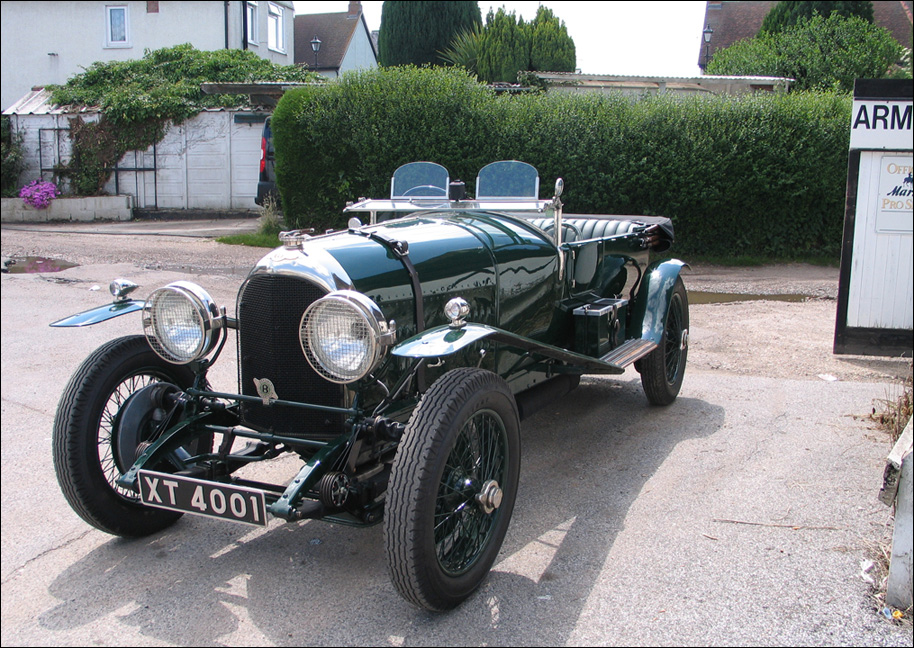 "I can ID the left one this Mr Oscar William Hindley Cooke.He purchased the car in June 1927. He worked for The De Havilland Aircraft Co at Stag Lane Airfield Edgeware Middlesex. He was the publicity manager his job was to make the most through the media at the time to show the world what famous people were buying planes at the time. He did mingle with some Bentley known names at the time, Mr Ivor McClure for one of the directors of the A A (??). He and Mr Oliver Tapper flew on the 11/06 27 to France in his D.H. 60 Moth reg G-EBRU to assist the Bentley team racing that weekend, also flying at the same time was Capt Eric Hayes in his Moth reg No. G-EBQW. His passenger was W O Bentley. The picture shows Mr Cooke collecting petrol for a long trip. I also note the car has a G.B. badge on the back to confirm it had been abroad. I'd love to think it was being driven to Le Mans. The Bentley sevice record shows a large engine rebuild in February 1927 and clutch adjust on the 9 June 1927. Mr Cooke served in WW2 as a Flight Liuetenant in the R.A.F. until 1948."