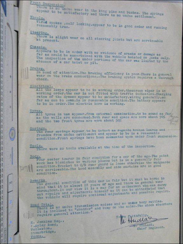 1931: Mr. E.N.B. Jeffery purchased this car in October 1931. Address: 6 Pear Close, Hay Lane, NW London.