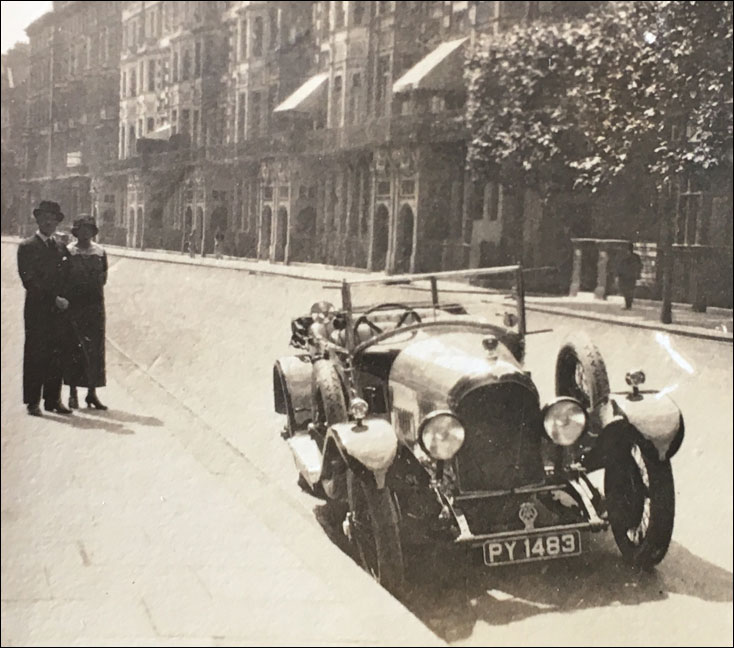 "The name of my grandfather who owned the car was Mr Stanley Hawkins, he is the gentleman standing next to the car in the photograph, with his wife Mrs Lily Hawkins who eventually sold the car."