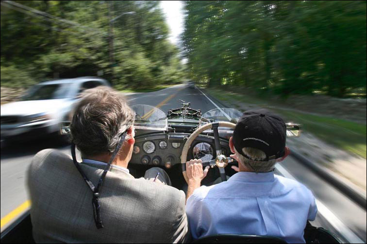 "This car will keep up with modern traffic," he added as he took a reporter and a photographer out for a 60-mile spin on a recent sunny afternoon. "You drive a Model A on the roads and you're a menace to yourself and everyone else."