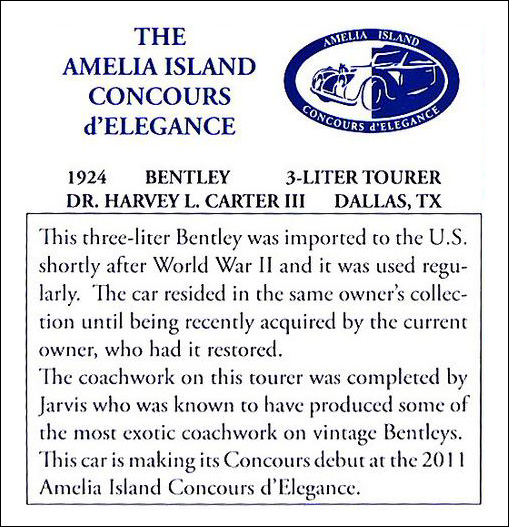 The coachwork on this tourer was completed by Jarvis who was known to have produced some of the most exotic coachwork on vintage Bentleys. This car is making its Concours debut at the 2011 Amelia Island Concours d'Elegance."
