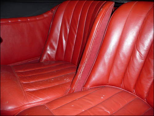 To the interior is lovely red leather contrasting strikingly with the blue coachwork.