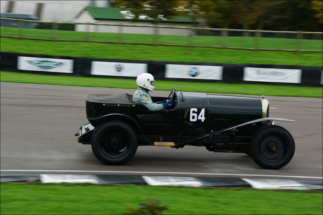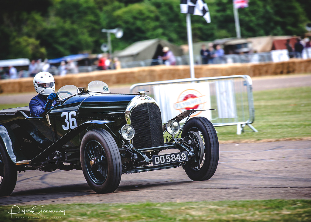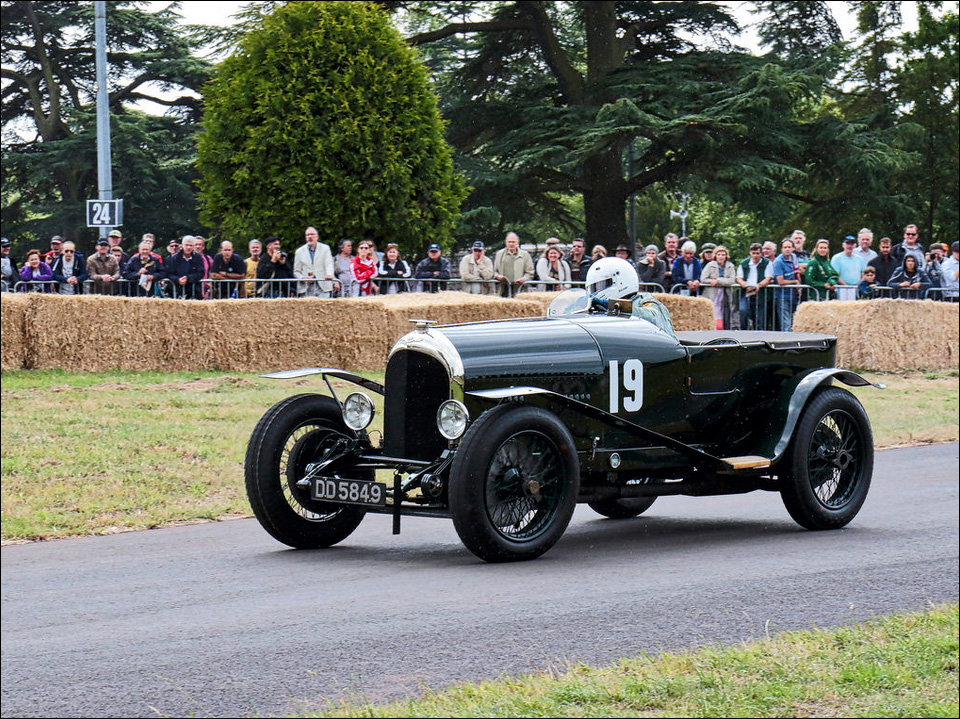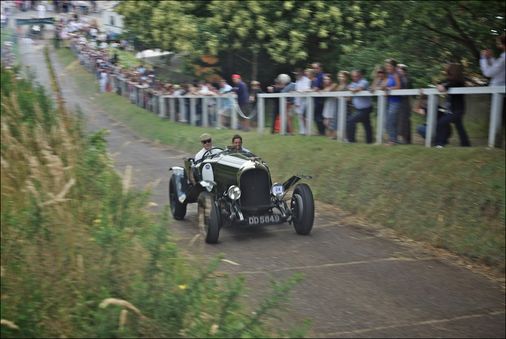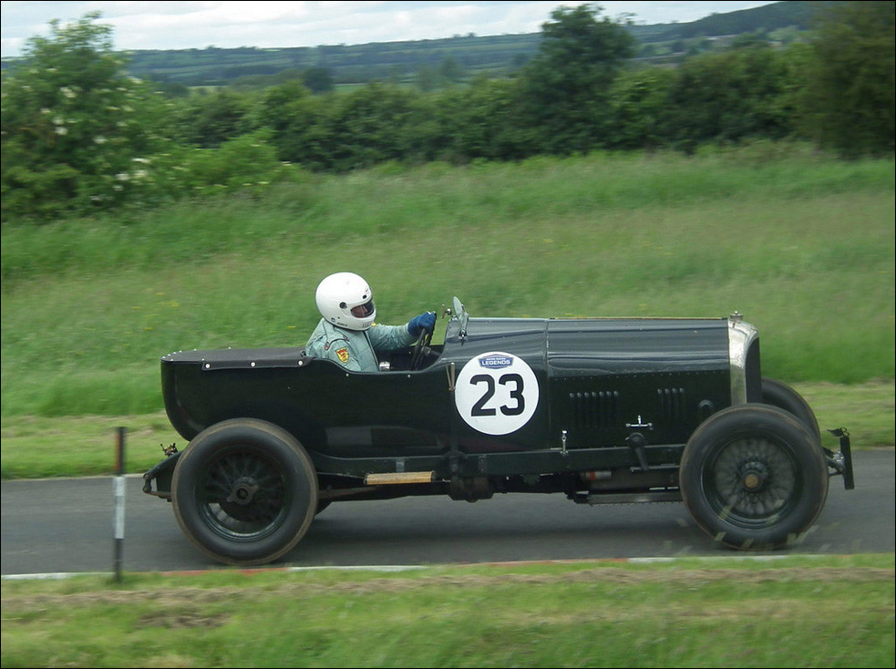 "1924 Bentley on its demonstration lap at 'FlyWheel' festival at Bicester Heritage centre."