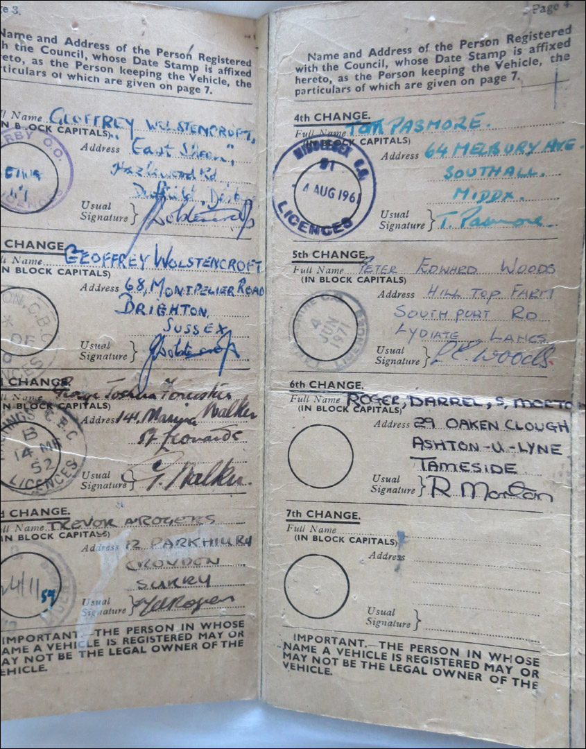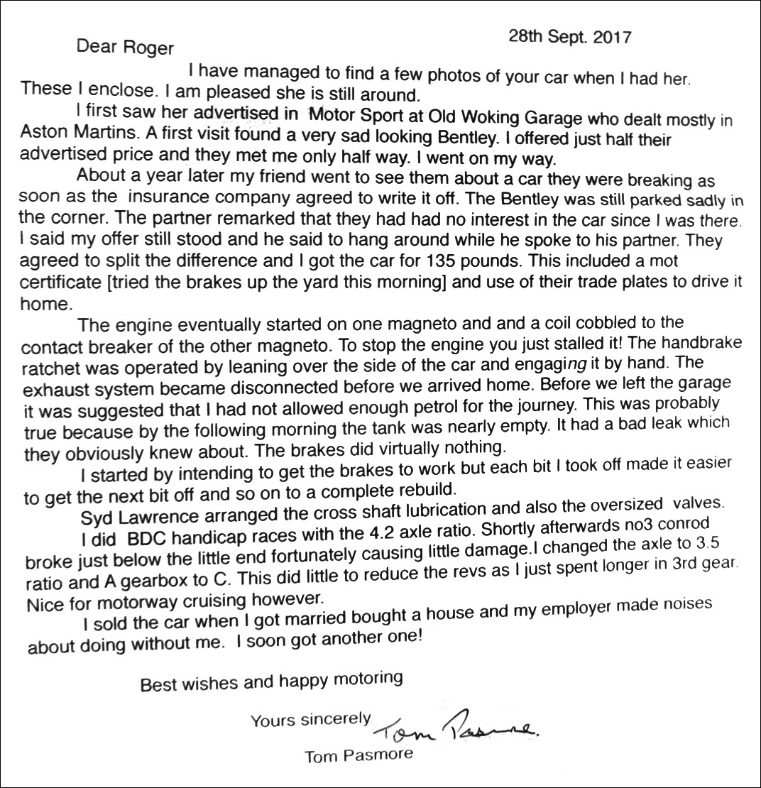 "Hi Mona, I have just received this letter and more photographs from Tom Pasmore about the car whilst he was custodian." (above, right)