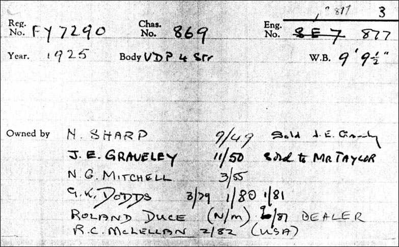 Date of purchase and sale unknown, but in his possession in 1939. Berthon went to India in Sep. 1939, so he probably sold the car to S. J. Dunn prior to his departure.
