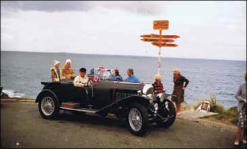 Originally imported into NZ in 1933, this car was dismantled following a major accident. In 1960 when looking longingly at (5) ST3008, the 4½ Litre then owned by Don Oddie, a young Timaru lad named Barry Goodman remarked, "One day I will own a Bentley." Those who laughed were mistaken, as over the next few years Barry with his older brother Brian managed to borrow, beg or buy enough parts by 1963 to complete the restoration of this 1924 3 Litre Tourer in 1965. Initially jointly owned, the car was owned by Barry until 1977 and by Brian until 1986, During Brian's ownership it participated in the 1983 'Totally Bentley Tour of South Africa', and is currently (?) owned by M. Owen of Cranmer Square, Christchurch. This photograph shows Brian Goodman with his family on board Ch891 at Stirling Point, Bluff.