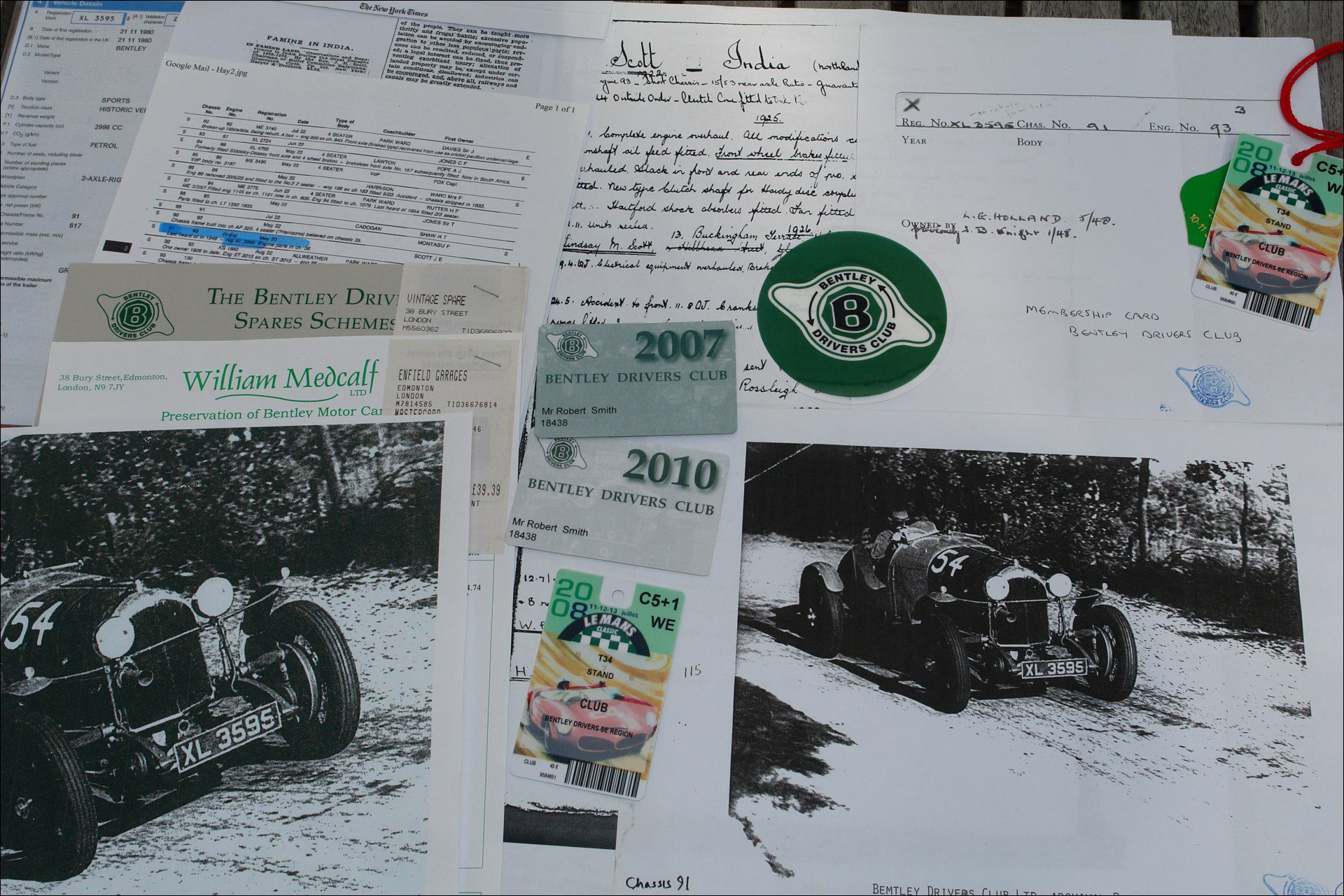 J B Knight is registered as owner by the Bentley Drivers Club