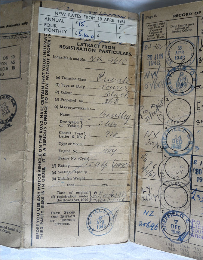 "My father owned this car from 1957 to 1965, then he sold it (to a Mr Tom Morton) in 1965 for just £100 and he always regretted it as he would often say so. My mum and dad used it as their wedding car on 15 October 1960. I do have some more photos of the car which I will send you soon."