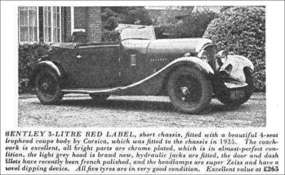 | More Info: | Michael Hay, in his book Bentley: The Vintage Years, 1997, states: "Parts of 914 built into this chassis. Corsica d/h coupe fitted 1936." |
