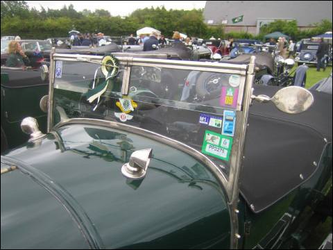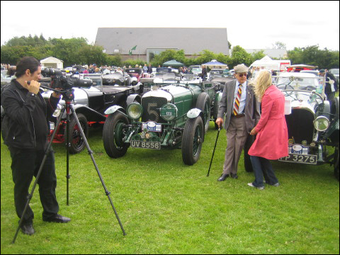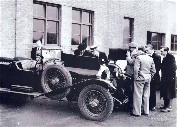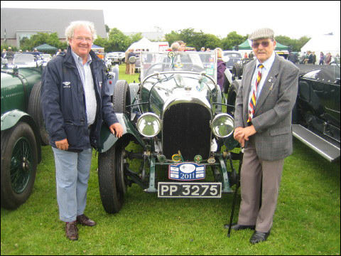 I saw and heard the car (the present owner started the engine for me) at The Bentley Drivers Club rally at the B.D.C headquarters in Oxford. The photos show me (with the tie and stick) and the present owner who brought the car over from Australia for a tour of Britain and the Continent."