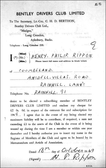 Photograph was taken at a Bentley Drivers Club meeting at the Police Headquarters in Hutton near Preston Lancashire. The man in the flat cap smoking a pipe is my father. In front of my father, Henry Philip Rippon, is my brother (a fighter pilot in W.W. II) and in between them, his head just visible, is another of my brothers. We were a large family of five boys and two girls!!