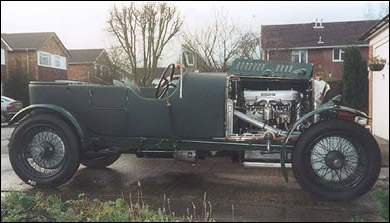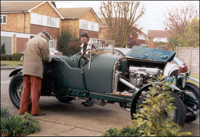 Says son Tyrone Hopes, "A damp day in December 2000, a few days before Christmas, but my first ride in it. It had few teething troubles, the main one being that one of the twin magnetos was not sparking properly. An item that sometimes confuses even Bentley enthusiasts is the single Bentley-Smith carburettor. This setup was standard for most of the long wheelbase cars leaving Cricklewood. Usually the shorter wheelbase cars have been given twin SU 'slopers'. The Vanden Plas style body is one of the few items bought-in during the restoration. The interior has been completely re-upholstered by Rosina Hopes. No weather equipment as yet."