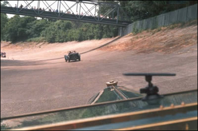 Tyrone adds, "While we were at Brooklands, we had a chance to zoom around on some of the banking that still exists. It was a bumpy ride, but worth every yard. I've always been a fan of those that drove round this curcuit all those years ago. The lap record (which will be held for perpetuity) was taken at 143mph. Alas the curcuit is now built on, and some of the banking has disappeared... This is the Member’s banking which was closest to the club house and finishing straight."