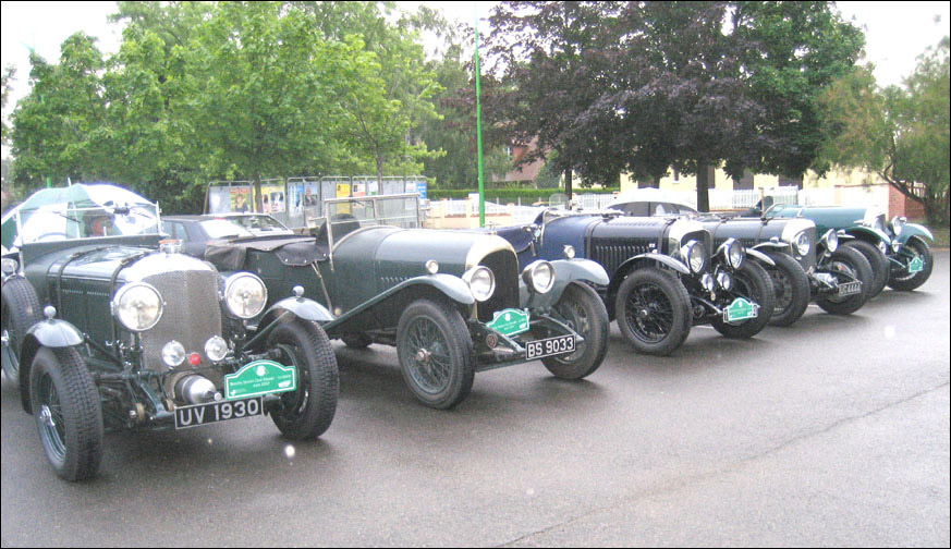 "We were about 50 Bentleys, the W.O. were well represented. Wwe gathered at Mulsanne village at 7am on Saturday June 16th before the start of the big race. After a briefing and a warm up lap the sky opened up and we did the remaining three laps on the Sarthe circuit in a heavy down poor with windscreens down of course. Due to the very slick roads the bigger cars had a hard time not skidding coming out of the corners but we had fun anyway, limiting the max speed to about 80mph. Shortly after we finished our laps the weather improved and the big race was off to a dry start and the wet drivers enjoyed a champagne breakfast."