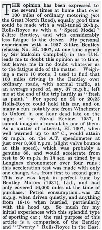 "It was not the means whereby the 3-Litre Bentley performed, but the manner in which it did it, that endeared the car to sportsmen who took pride in their driving. The engine was remarkably flexible, strong and reliable, the gear ratios admirably chosen, the handling excellent and the quality unremittingly high. So, also, was the price, but an ever-growing reputation, augmented by striking racing victories - including the Le Mans 24 hours of 1924 and 1927 - ensured its success" ('Classic Sports Cars' by Cyril Posthumus and David Hodges).