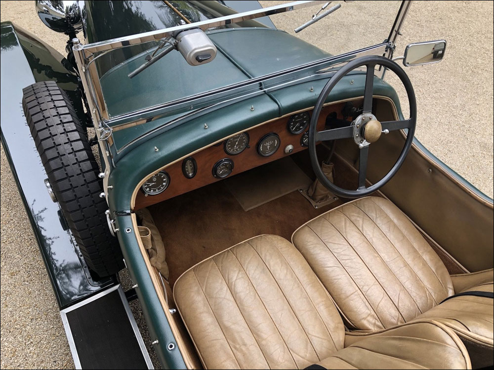Advancing years and infrequent use has prompted the vendor’s decision to pass ‘OU 1179’ to a new custodian such that they may be able to enjoy it as he has during no fewer than 46 years ownership. Although ‘OU 1179’ has seen far less use in recent years, it has still received regular care and attention including the fitment of a new radiator and core. Nearly all of the major mechanical components of the car are original including the chassis, engine, C-type gearbox, back axle banjo and steering box. The differential nosepiece is from a 61/2-Litre Bentley with a 15/45 ratio.