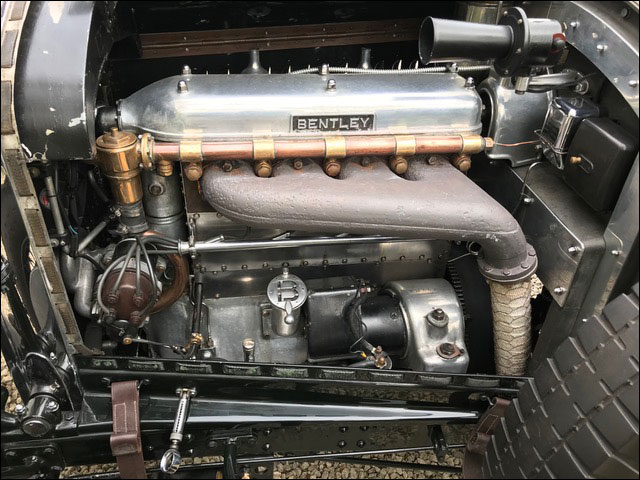 W. O. Bentley proudly debuted the new 3-litre car bearing his name at the 1919 Olympia Motor Exhibition, the prototype engine having fired up for the first time just a few weeks earlier. In only mildly developed form, this was the model which was to become a legend in motor racing history and which, with its leather-strapped bonnet, classical radiator design and British Racing Green livery has become the archetypal vintage sportscar. The new 4½ litre model effectively employed the chassis, transmission and brakes of the 3 litre, combined with an engine that was in essence two-thirds of the six-cylinder 6½ litre unit. Thus the new four-cylinder motor retained the six's 00x140mm bore/stroke and Bentley's familiar four-valves-per-cylinder fixedhead architecture but reverted to the front-end vertical camshaft drive of the 3 litre. Bentley Motors lost no time in race-proving its new car. It is believed that the first prototype engine went into the 3 litre chassis of the 1927 Le Mans practice car. The original 4½ litre car, nicknamed by the team 'Old Mother Gun' and driven by Frank Clement and Leslie Callingham, promptly set the fastest race lap of 73.41mph before being eliminated in the infamous 'White House Crash' multiple pile-up. The 4½ litre was produced for four years, all but nine of the 665 cars made being built on the 3 litre's 'Long Standard', 10' 10-wheelbase chassis. Purchasers of the 4½ litre model were, in common with those of all vintage-period Bentleys, free to specify their preferences from a very considerable range of mechanical and electrical equipment in addition to whatever body style and coachbuilder may be required.