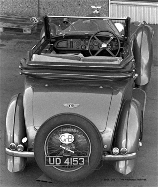 "Magnus Hedborg bought the 1930 4½-litre Bentley Chassis FS3620, Registration No. UD 4153 in October 1968 from D. Margulies Ltd in London. The T.H. Gill & Sons bodied Drop Head Coupe arrived at Gothenburg from Tilbury on Swedish Lloyd's Saga on October 24th (together with friend and neighbour Åke Hellden's Singer Le Mans).