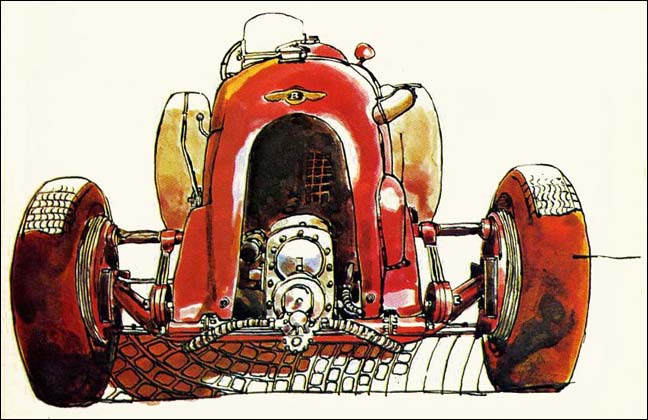 Can anyone supply details of the car’s post-war competition history and ownership, prior to its acquisition and restoration by Dr George Daniels? Also, can anyone please identify the artist?