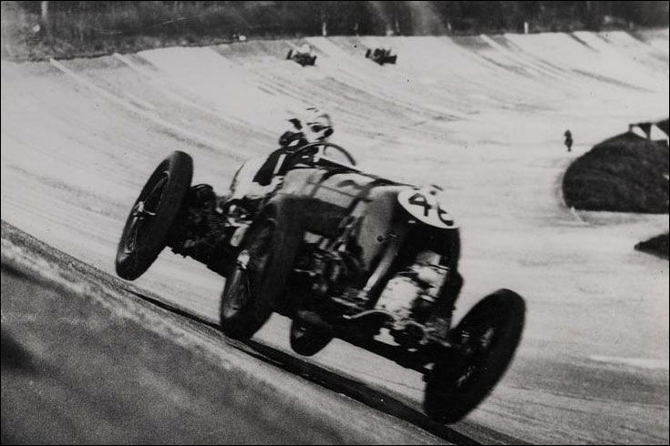 Bill Boddy: "The crowd was on its toes... And round they came, the Bentley gaining, yard by yard, on the Delage. As Birkin hurtled off the banking the 'bump' shot his car well clear of the Track and the padded rest on the fairing behind his head came adrift, to fly, a small dark object, high into the air. In a supreme effort, Birkin caught Cobb and drew ahead, winning one of Brooklands' most intense races by a mere one-fifth of a second, or about 25 yards. He averaged 125.14mph and that glorious last lap was run at 137.58mph (0.28mph below the record)." Out again in the Hereford Lightning Long Handicap, Birkin swept around at 136.45mph, being classified second at the finish."