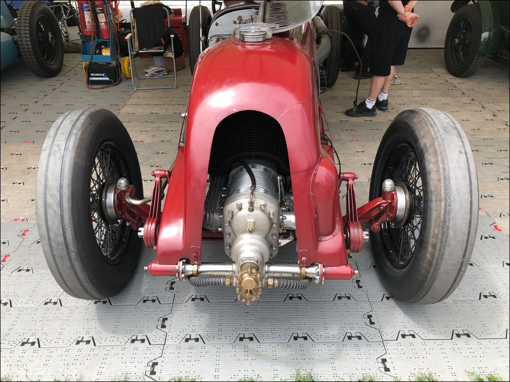 Reid A. Railton had been commissioned to design a new (fire proof!) aluminium body to replace the flexibly-frame fabric original, and it was hand made for the car by A.P. Compton & Co of Merton. The regulation Brooklands silencer on the car's nearside now bolted directly to the exhaust manifold, without any flexible-pipe intervening. Front-wheel brakes were deleted and the car rode on 32-inch x 6.50 Dunlop Racing tyres.