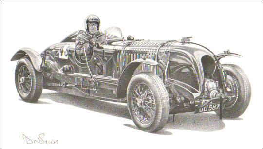 In 1960 I went to "Southgate Motors" London where, at the request of the proprietor Mr Sydney Lawrence, I made a drawing of a 1928 British Racing Green Blown Bentley registration mark UU 5871, which I was told had been raced by the famous Tim Birkin. The owner of the car was Mr John Morley and it had been converted during its life from standard 3 litre to the blown 4.5 litre, had two seats and full road specification headlights, horns, mudguards, etc. I was guest passenger in the same car, which was driven to the Bentley Owners' Club Concours d'Elegance held in Hyde Park later that year.