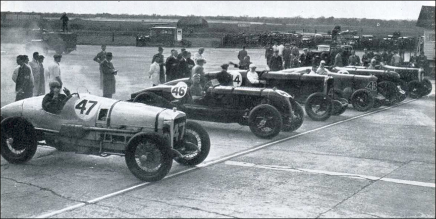 The threat of rain at the August Meeting persuaded Birkin not to run the Single-Seater in one race, but in the 3-lap invitation event for 100 Sovereigns, Birkin in the Bentley confronted John Cobb in the V12 Delage. The French car was the faster starter, leading by 3.8 seconds completing the opening lap. But on lap 2 'Tiger Tim' flashed round at 135.70mph and was just 1.2 seconds off Cobb's tail.