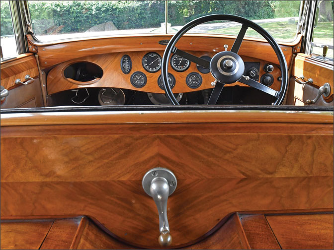 Outstanding features of the design include the “de Ville extension”, which, when closed over the front cabin, has a very neat appearance, and the unusually long and flowing wings gives the car the appearance of a full limousine. The owner reports that this extremely convenient and practical feature readily combines the fun of open air motoring with the ability to be snug, dry, and warm extremely quickly, should the weather turn inclement. Featured in the Show Number issue of The Autocar on 25 October 1929, the car was promptly sold at the motor show by H.M. Bentley & Partners, W.O.’s brother, to John Davie, of Dartmore, Frithwood Avenue, Northwood.