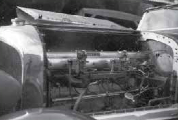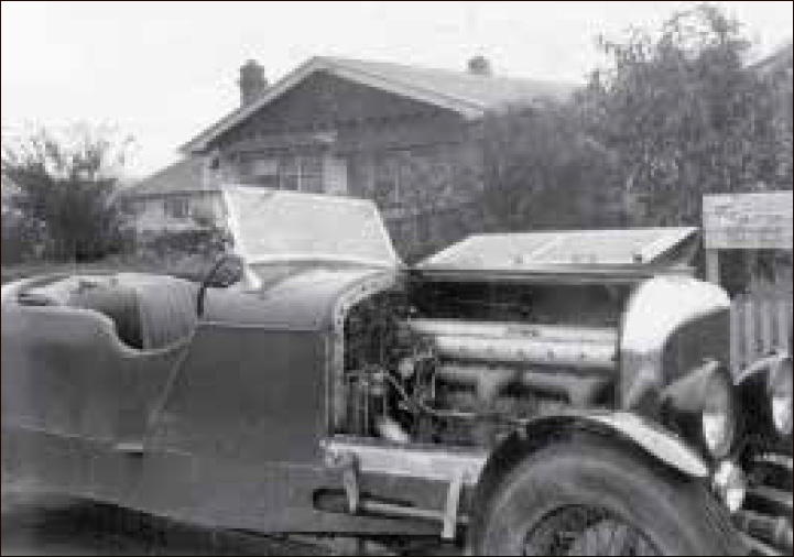 "6½ litre, chassis KR2692, outside 237 Lyttelton St, Christchurch in the 1950s. In the photograph on right it is still wearing those dreadful carburettors installed by Bruce Johnston, before Andrew Anderson and Selwyn Jackson found its original Smiths carburettor. Selwyn at that time lived with his parents at 62 Cobham St, where there were half-acre sections, and Andrew remembers that pigs and chickens lived on the property too."
